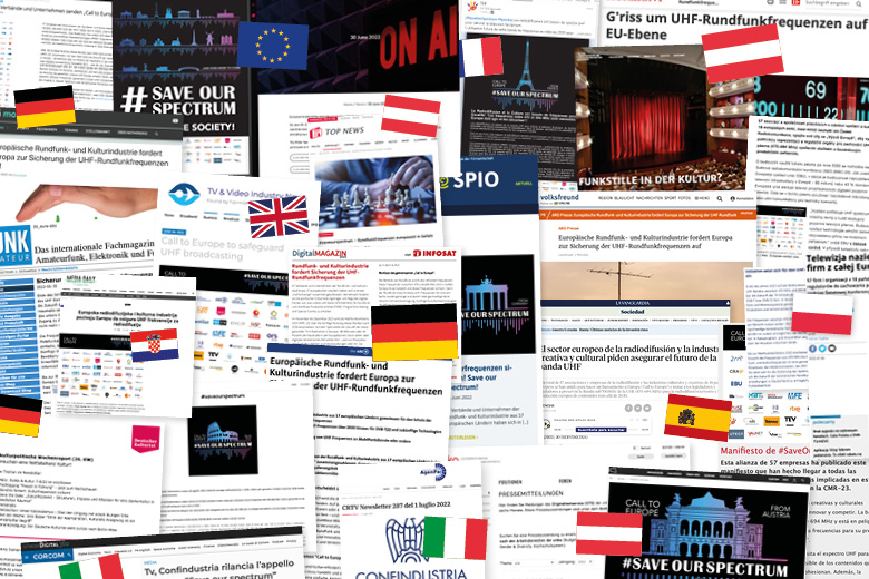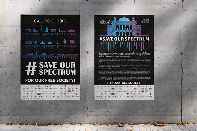 57 Verbände und Unternehmen der Rundfunk- und Kulturindustrie aus insgesamt 17 europäischen Ländern in einem gemeinsamen „Aufruf an Europa“ an politische Entscheidungsträger:innen, das untere UHF-Band (470-694 MHz) für Rundfunk langfristig zu erhalten. Denn bei der Weltfunkkonferenz 2023 steht zur Debatte, ob auch Mobilfunkbetreiber in diesem Frequenzband aktiv sein dürfen, eine Aufteilung würde den Betrieb von terrestrischem Rundfunk sowie die Abhaltung von (Kultur-)Veranstaltungen gefährden.