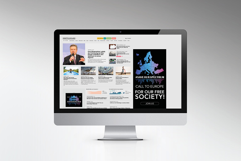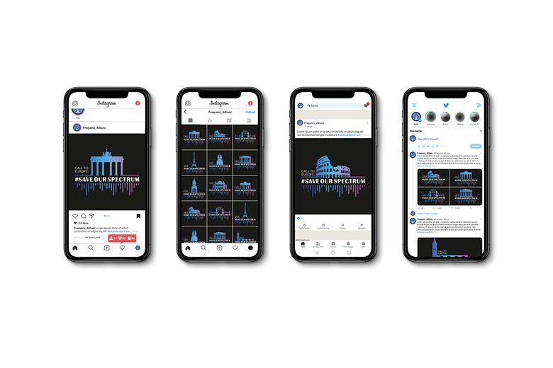 PROJEKT21: konzipierte für diese europaweite Sensibilisierung für den Frequenzerhalt eine breit angelegte Online- und Social Media-Offensive. Key Visuals waren dabei die Wahrzeichen der einzelnen europäischen Länder (Call to Europe), kombiniert mit dem Call-to-Action #saveourspectrum sowie, visuell, die symbolische Übertragung von Frequenzwellen im Radio- und Rundfunkbereich. Gestaltet wurde neben den Einzelsujets der einzelnen Länder auch ein gemeinsames Ländersujet für Web Banner und Social Media Posts. Ergebnis: Hoher europaweiter medialer Impact!