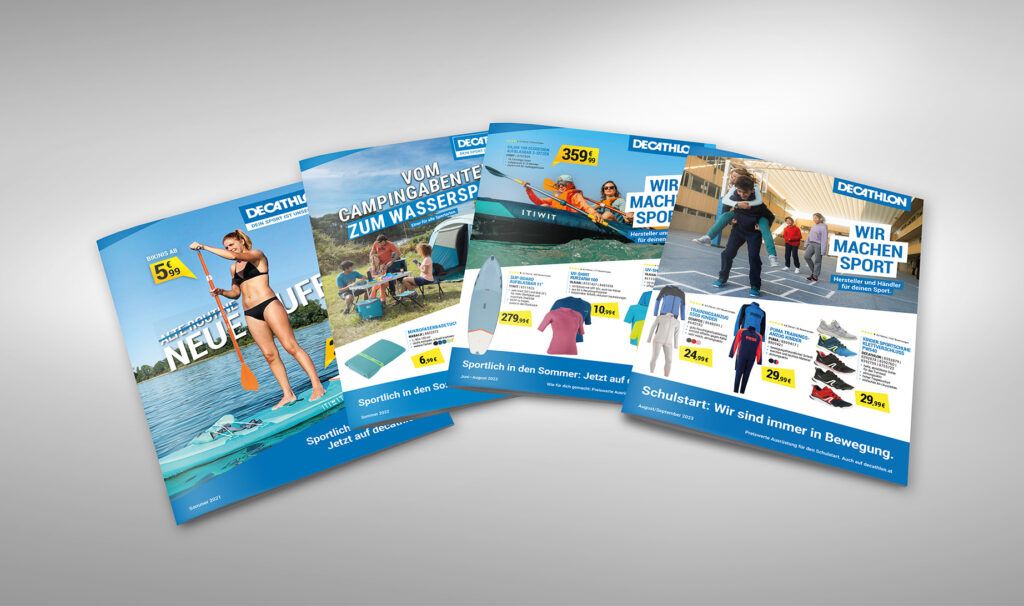 Der französische Sportartikelhersteller DECATHLON ist in 54 Ländern für sein 70 Sportarten starkes Sortiment und ein innovatives Einkaufserlebnis bekannt – so auch in Österreich, wo das Unternehmen an 5 Standorten Präsenz zeigt. Mit an Bord: PROJEKT21:, das nicht nur für Layout und Kreation der regelmäßig erscheinenden Salesfolder, Inserate und Flyer verantwortlich zeichnet, sondern das Unternehmen auch beim Signaging/Branding unterstützt.