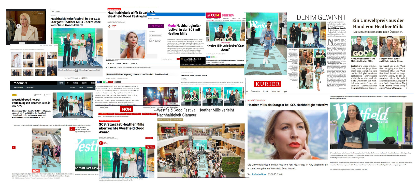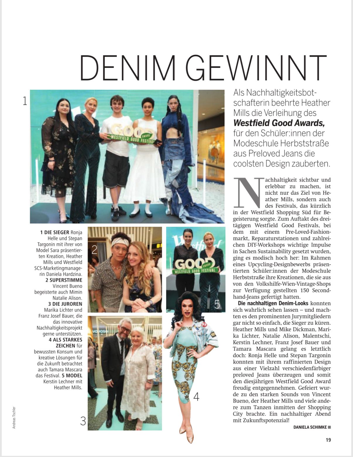Im Rahmen des Westfield Good Festivals in der Westfield Shopping City Süd wurde am 5. Juni in Kooperation mit der Modeschule Herbststraße der Good Award an ein herausragendes Nachwuchstalent verliehen.