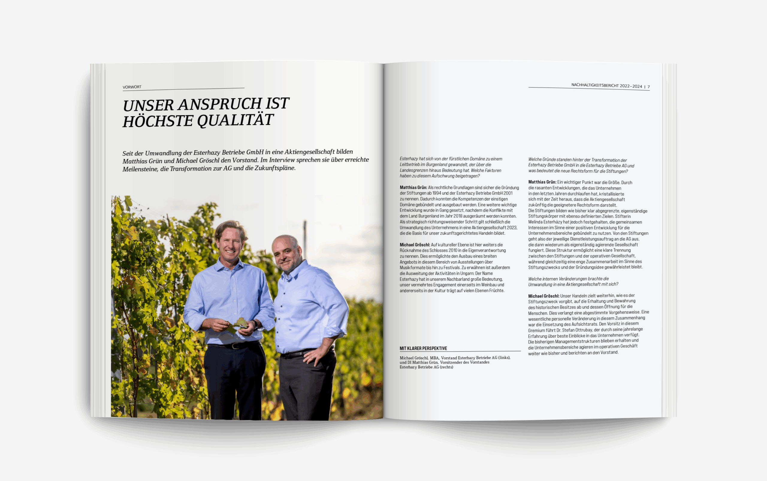 Nachhaltigkeit sichtbar machen – unter diesem Anspruch gestaltete PROJEKT21 den siebten Nachhaltigkeitsbericht der Esterhazy Betriebe AG, der am 27. Mai 2025 auf dem Bio-Landgut Esterhazy in Donnerskirchen präsentiert wurde. Der Bericht spiegelt das Engagement des Unternehmens für ökologische, ökonomische und soziale Verantwortung wider. Er ist klar strukturiert, visuell anspruchsvoll und informativ.