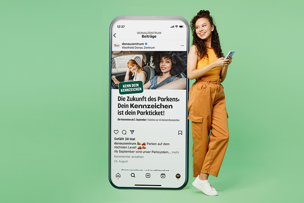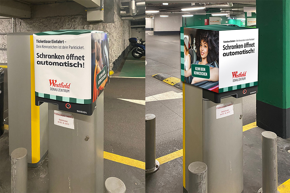 Das Westfield Donau Zentrum läutet ein neues Zeitalter des Parkens in Österreich ein – mit einem innovativen, ticketlosen und barrierefreien Parksystem. Im Gegensatz zum herkömmlichen Parkticket wird bei der Einfahrt ins Center nicht zusätzlich, sondern nur mehr das Kennzeichen des Fahrzeugs gescannt. Die Bezahlung erfolgt anschließend, indem man sein Kennzeichen am Kassenautomaten eingibt. Das eigene Kennzeichen wird somit zum Parkticket. Daher steht die innovative Kampagne von Projekt21 unter dem Motto: „Kenn dein Kennzeichen.“ Die Zeit des lästigen Ticketsuchens ist also vorbei.