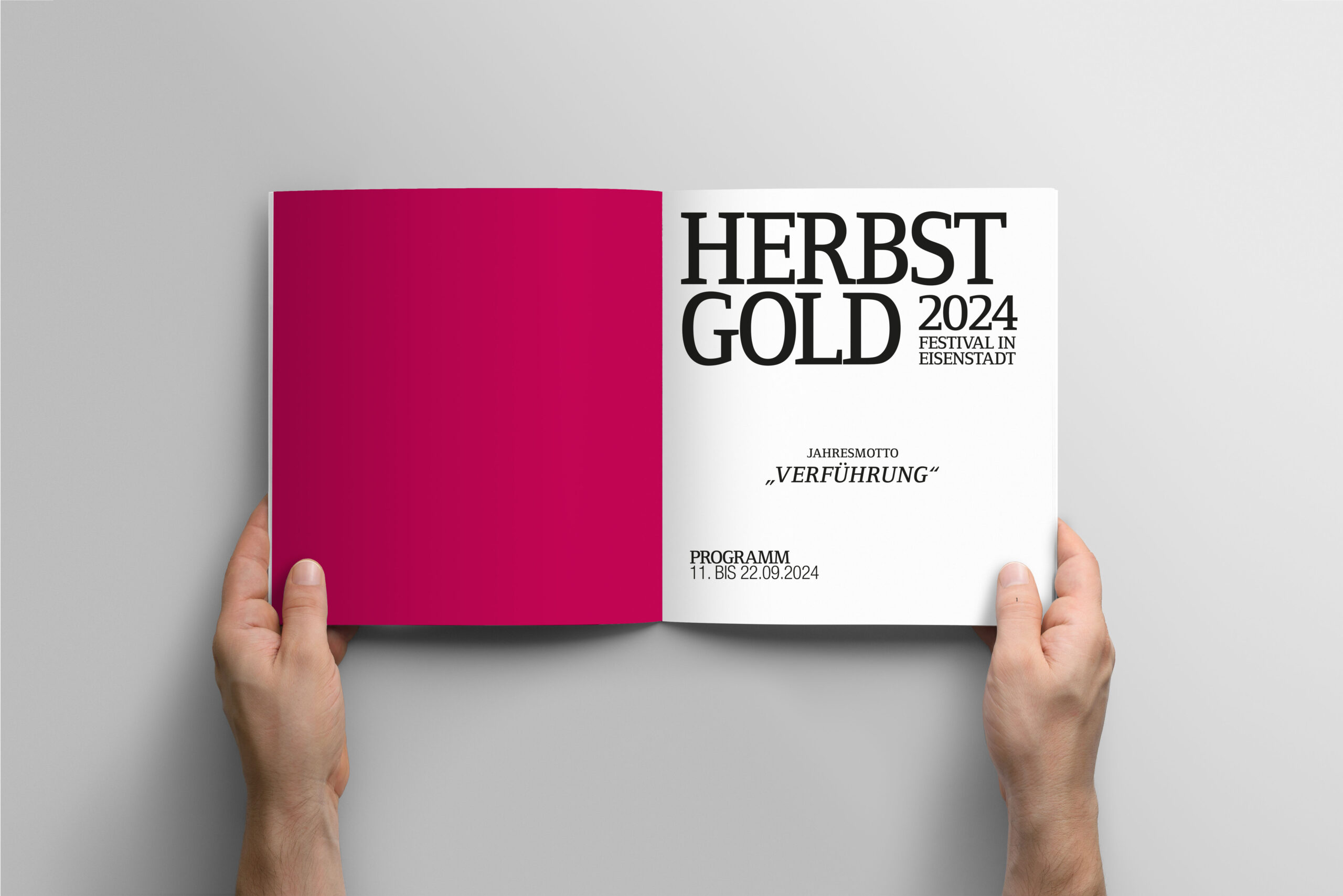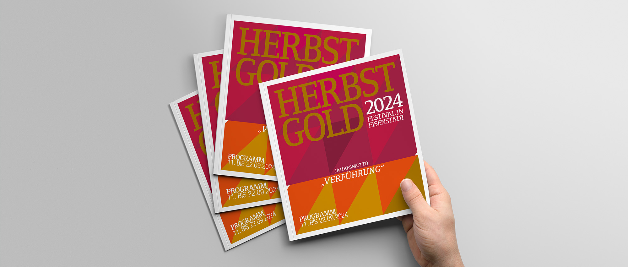 Wir freuen uns, auch in diesem Jahr Teil des HERBSTGOLD-Festivals in Eisenstadt zu sein, das vom 11. bis 22. September 2024 unter dem inspirierenden Motto „Verführung“ stattfindet. In enger Zusammenarbeit mit dem Festival-Team haben wir auch dieses Jahr wieder das Programmheft gestaltet.