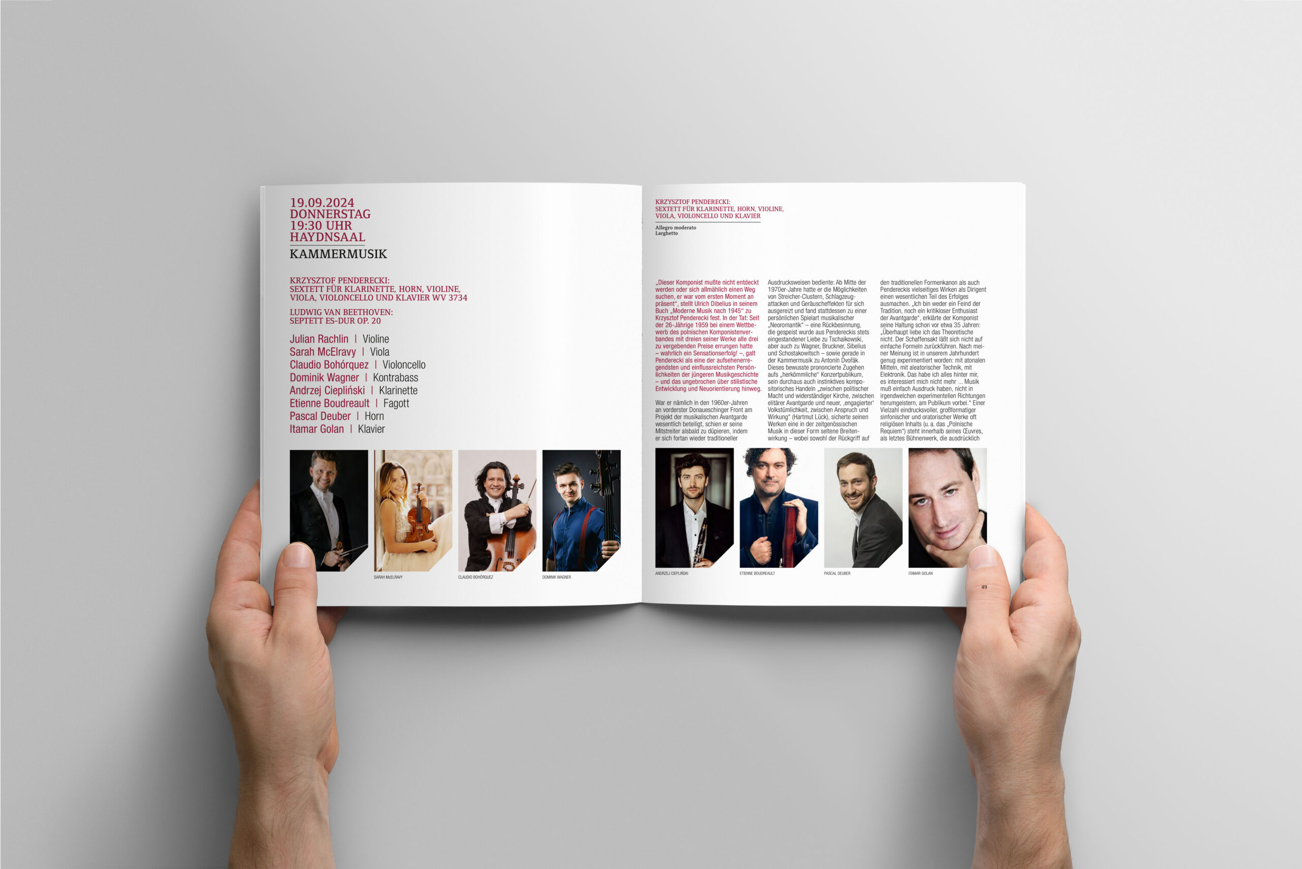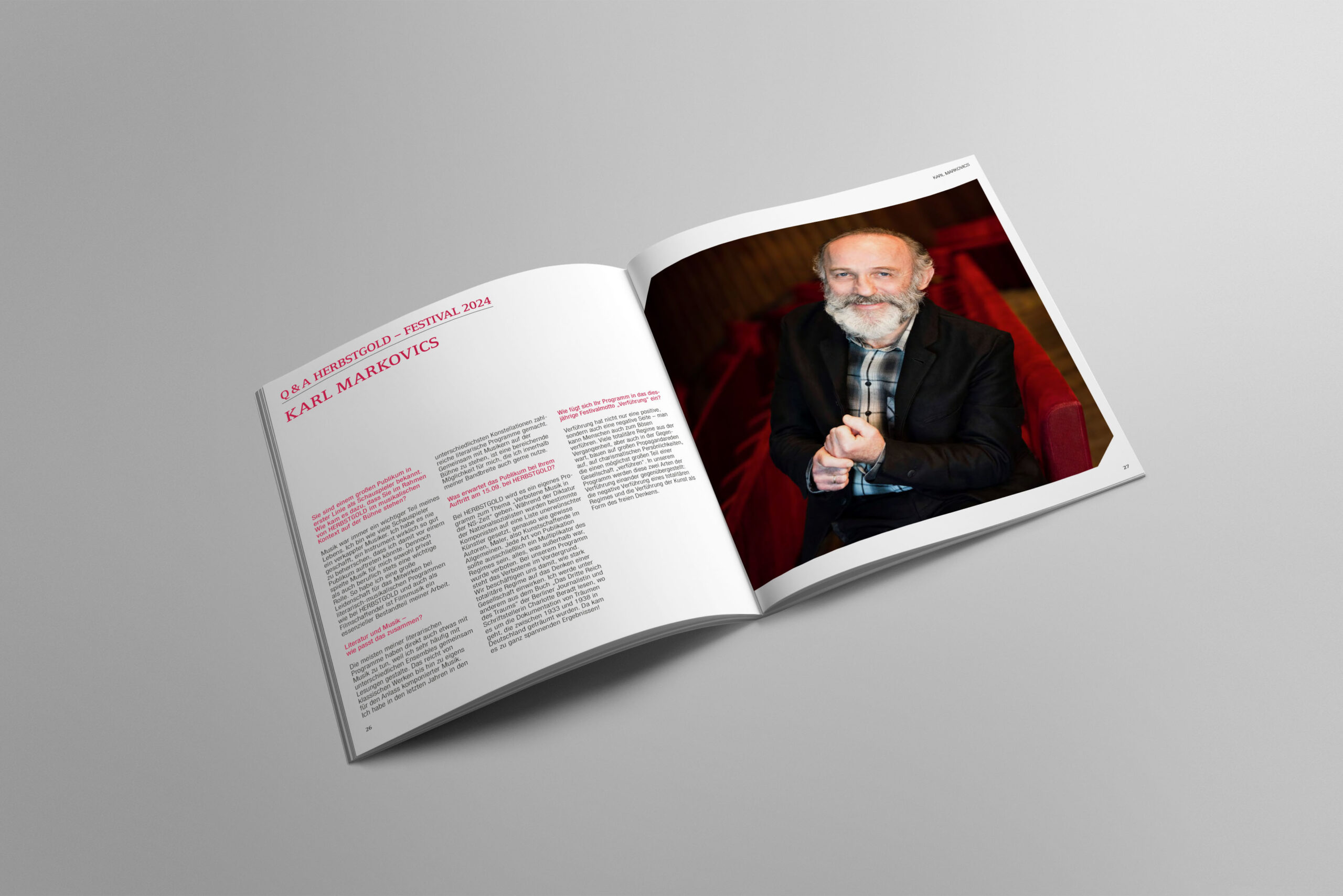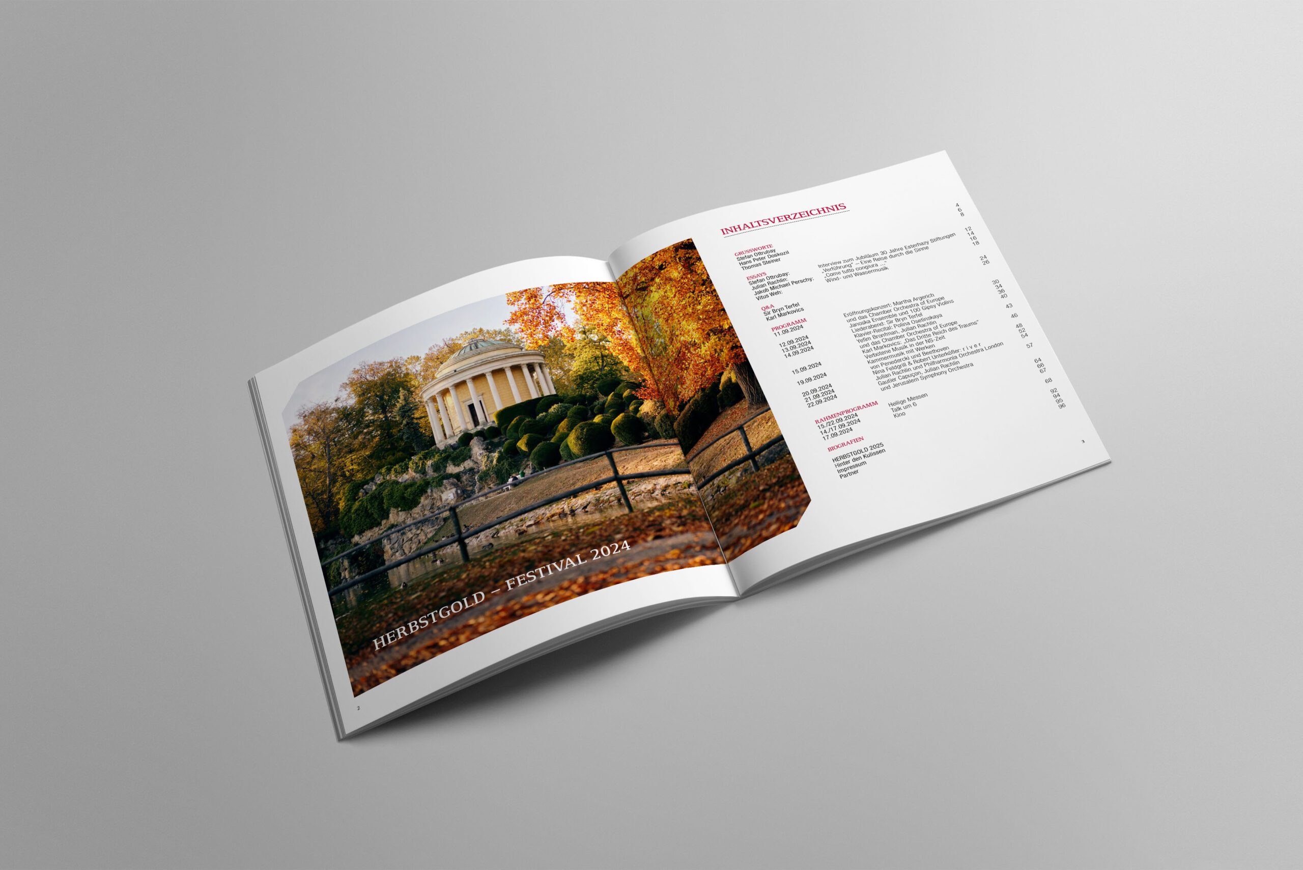 Das Programmheft zu HERBSTGOLD ist ein weiteres Beispiel dafür, wie wir umfangreiche Programminhalte übersichtlich, modern und kreativ umsetzen. Das Layout von Projekt21 verbindet auf ansprechende Weise Design und Information und erfüllt damit gleich zwei zentrale Funktionen: Es verleiht den Inhalten eine klare Struktur und sorgt gleichzeitig für eine ästhetisch ansprechende Präsentation. Damit macht es schon beim Durchblättern Vorfreude auf ein ganz besonderes kulturelles Erlebnis.