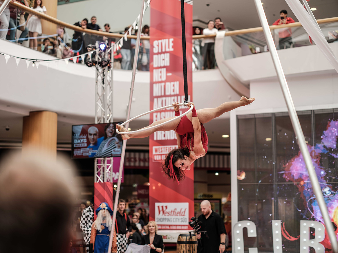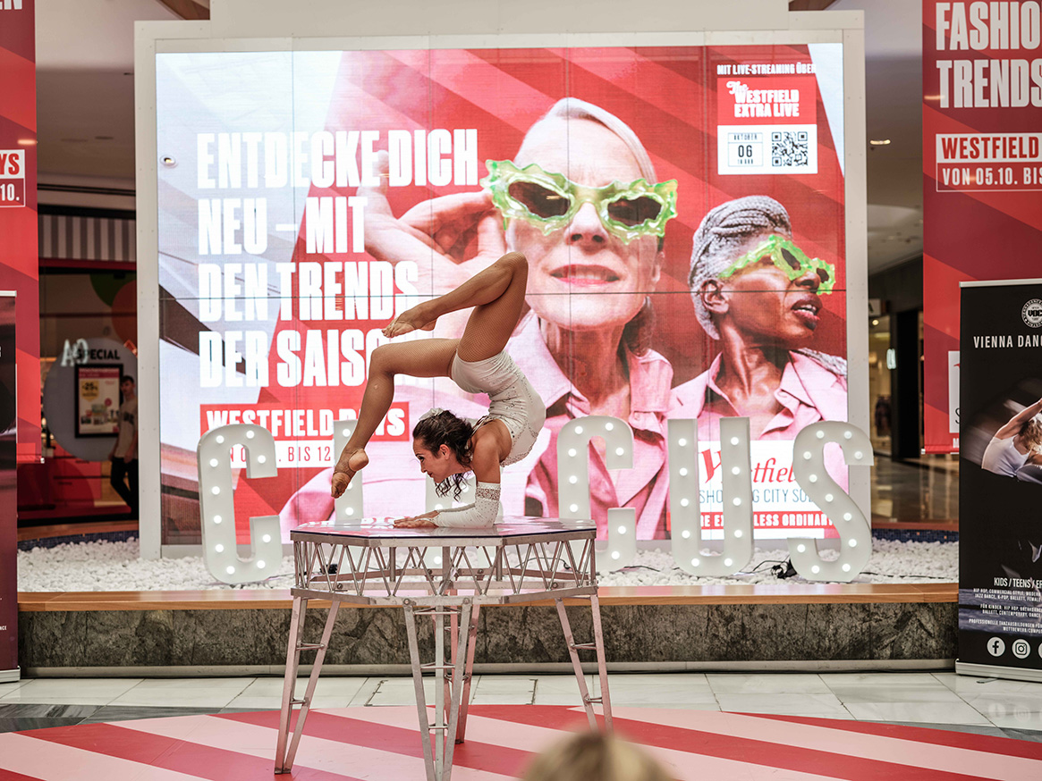 Bei den Westfield Days (Ende September bis Mitte Oktober) luden die Westfield Shopping City Süd und das Westfield Donau Zentrum ihre Besucher:innen zu extravaganten Trend- und Fashionshows, Stylingworkshops (mit Beauty-Profis von Dyson bzw. LUSH), Digital Creation Workshops (mit Influencerin und Lifestyle-Bloggerin Vanessa Strauß), Gewinnspielen, Zirkusartisten und vielem mehr. Ein Highlight wie immer: Die DJane, die auf einer fahrenden mobilen Stage durch das Center groovte und die Fashion Shows mit den aktuellsten Herbsttrends anteaserte.