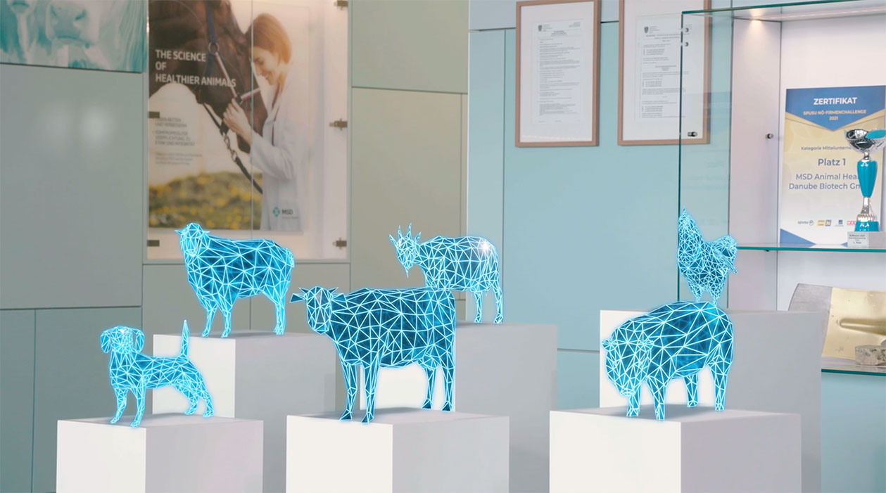 MSD Animal Health steht für Tierwohl auf der ganzen Welt. Am Produktionsstandort des Unternehmens in Krems an der Donau werden auf rund 30.000 m² mit modernsten Technologien und Herstellungsverfahren bakterielle und virale Antigene sowie Impfstoffe für die Tiermedizin hergestellt. PROJEKT21: konzipierte und kreierte für diesen Kunden neben einem Recruitingvideo auch einen Imagefilm, der nicht nur die innovative Produktionsstätte für Tiermedizin in den Fokus rückt, sondern die Tiere als lebendige 3D Avatare eine tragende und sympathische Rolle als Protagonisten der Story spielen lässt.