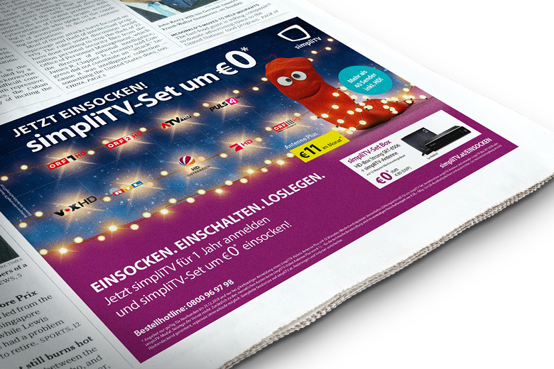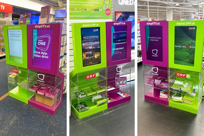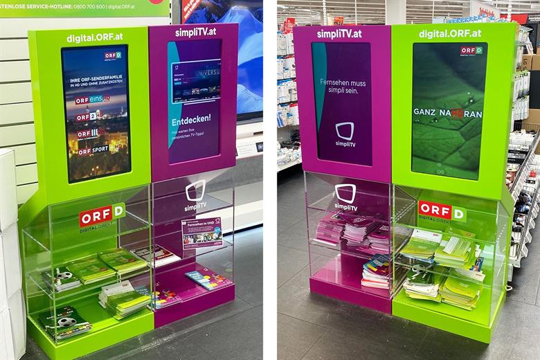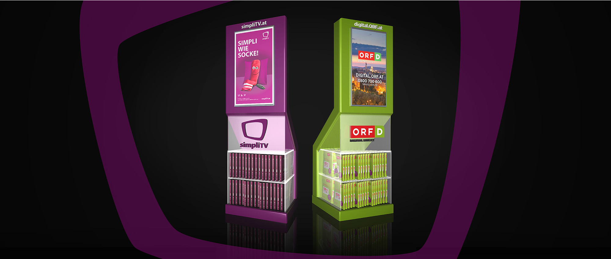 simpliTV bietet die neueste Generation des Fernsehens, unkompliziert, einfach und flexibel. Das Kreativteam von PROJEKT21: entwickelte für seinen Kunden ein aufmerksamkeitsstarkes, innovatives Produkt direkt am Point of Sale in ausgewählten Mediamärkten für ein hybrides und direktes Produkterlebnis im Duett mit ORF Digital. Bei dieser Inszenierung, die einmal mehr die Innovationskraft von simpliTV unterstreicht, verwandelte PROJEKT21: den Point of Sale (POS) zu einem Point of Purchase (POP), denn: Fernsehen und POS-Marketing müssen simpli sein!